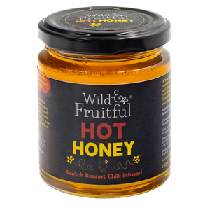 A beautiful golden honey infused with scorching Scotch Bonnet Chillies.